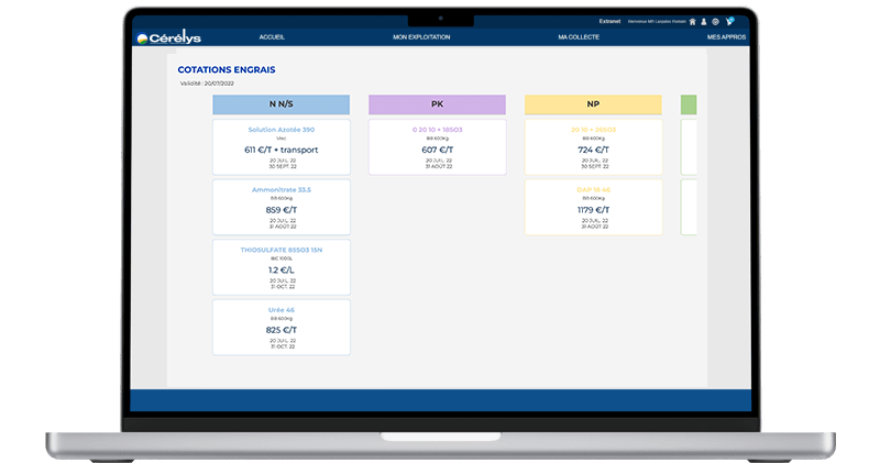 Notre solution web (extranet web et application mobile) est une solution complète offrant de nombreuses fonctionnalités (actualités, contrats, commandes, fds, ...). La conférence en ligne organisée le 1er décembre 2022 était centrée uniquement sur les cotations et la commercialisation de céréales.
